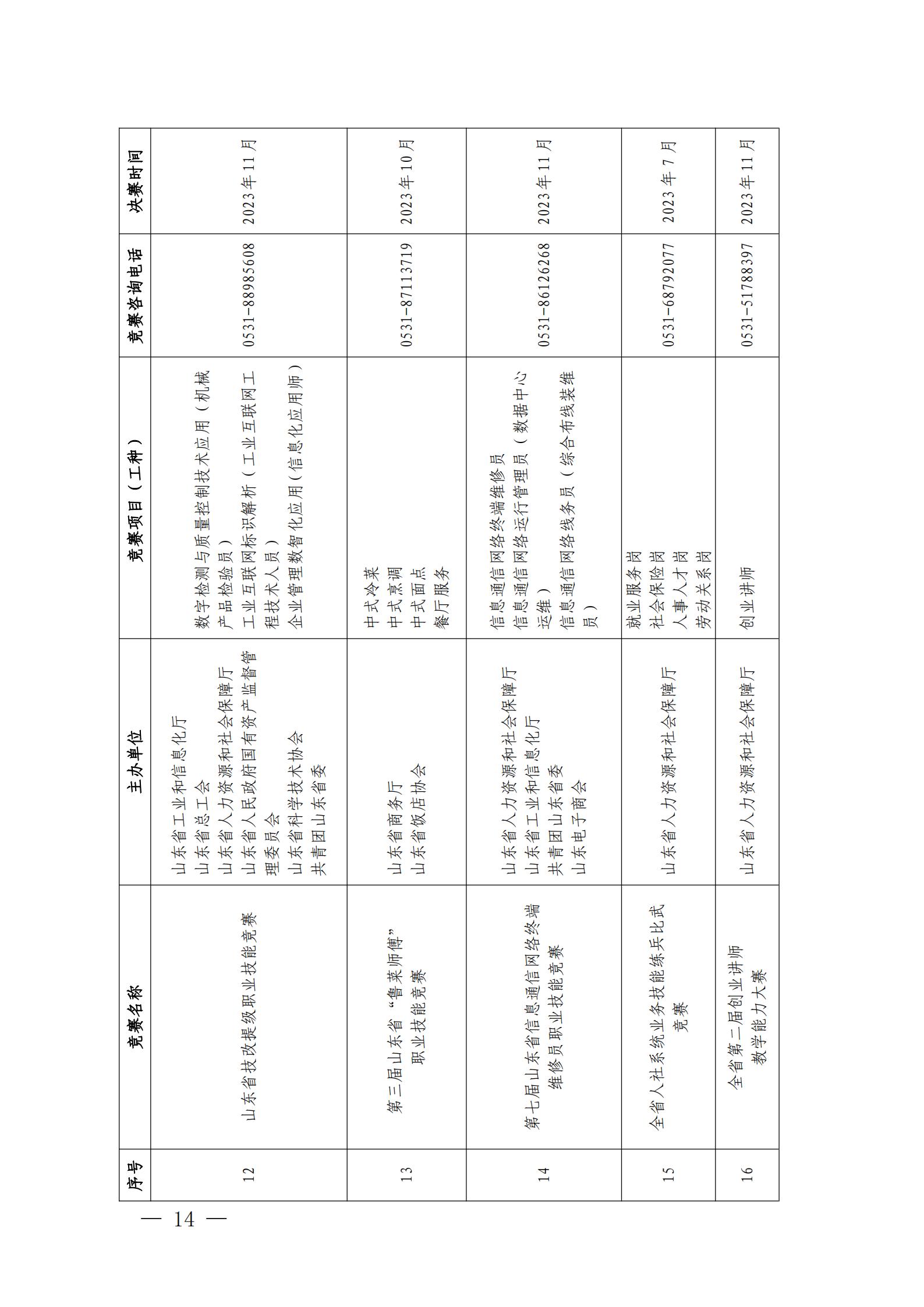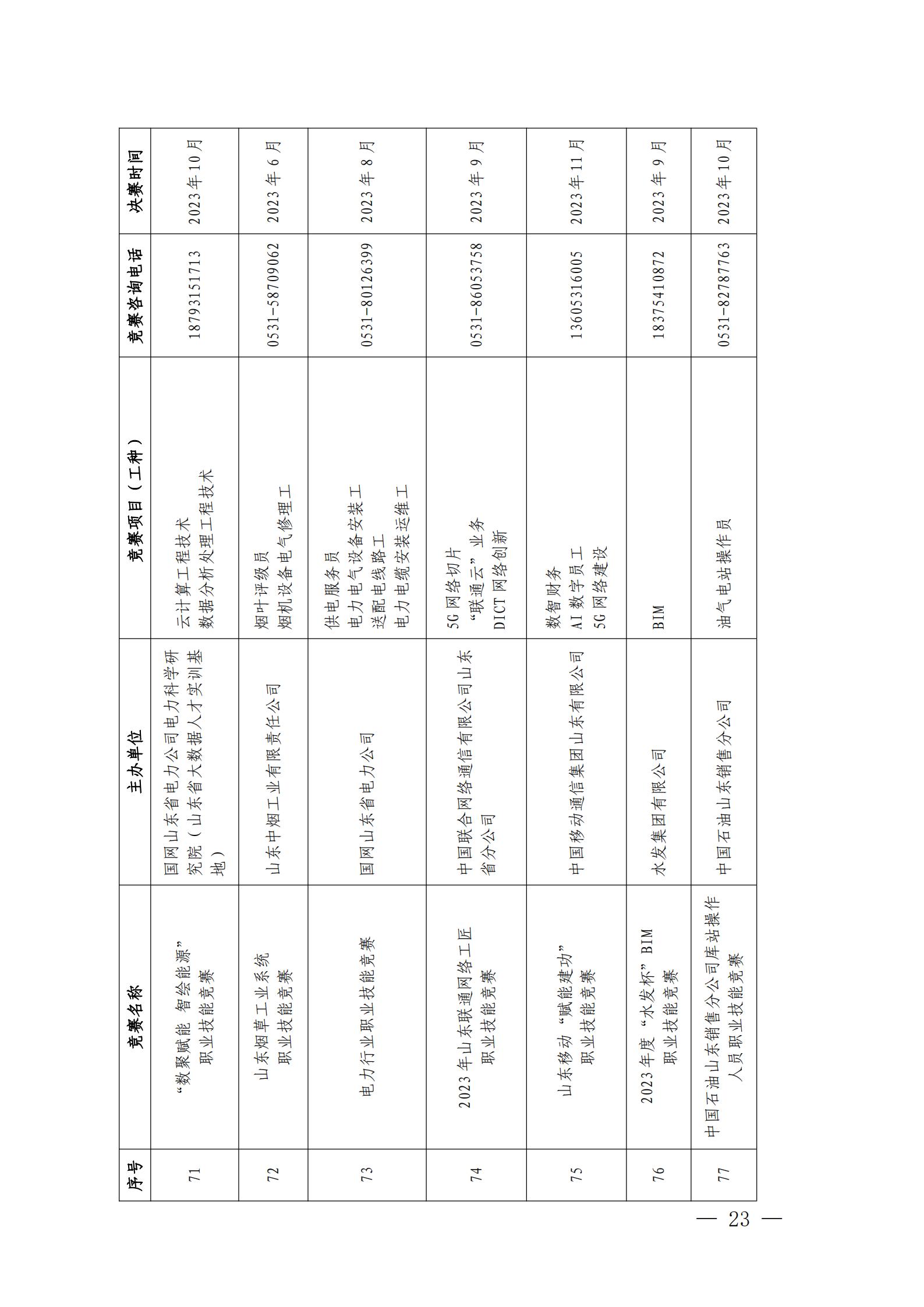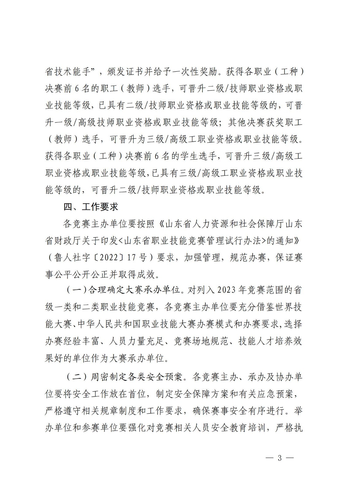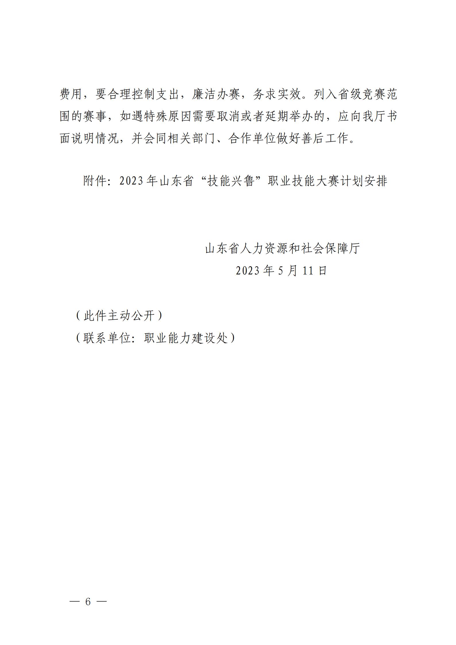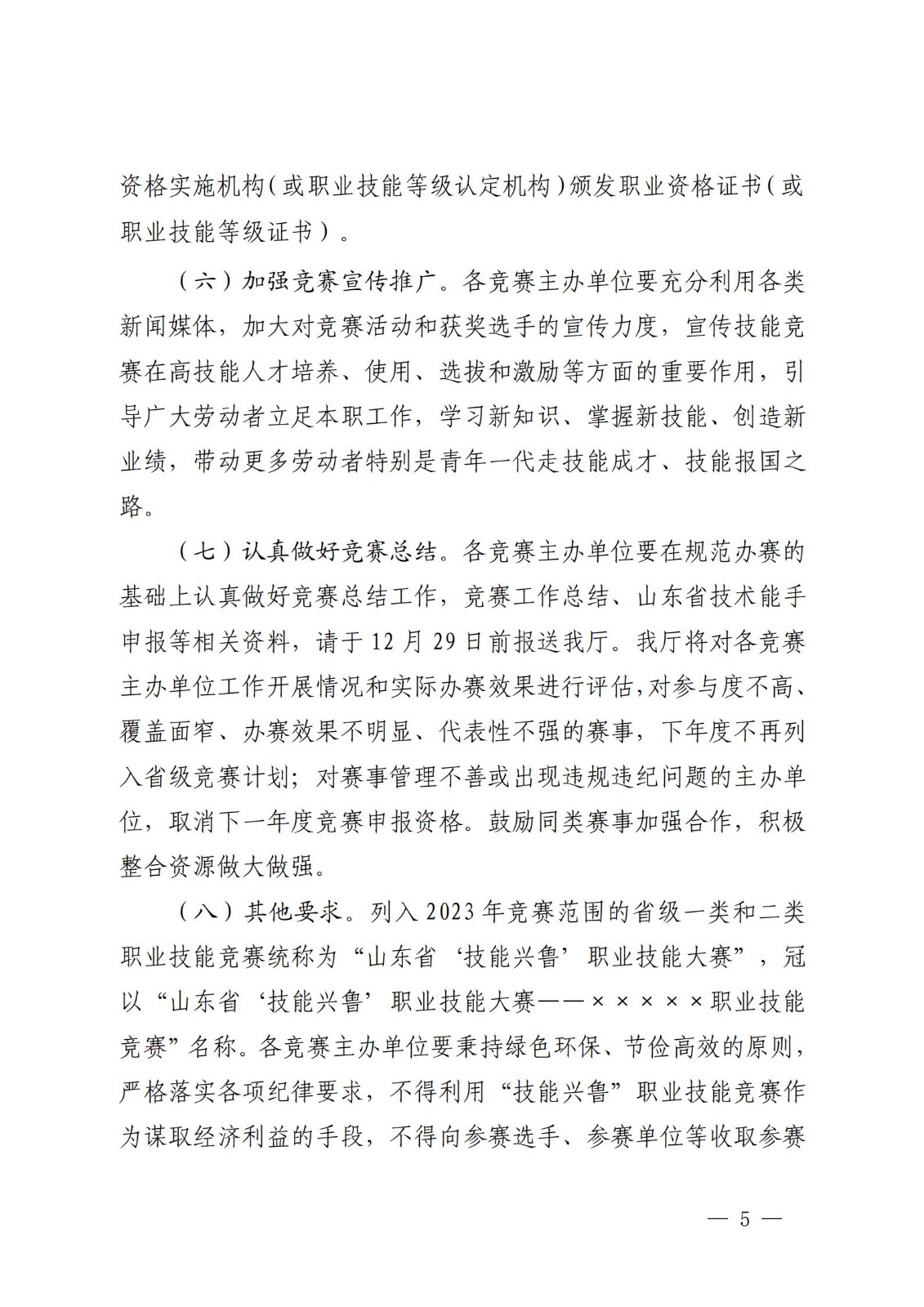 山东省人力资源和社会保障厅《关于组织开展2023年山东省“技能兴鲁”职业技能大赛的通知》