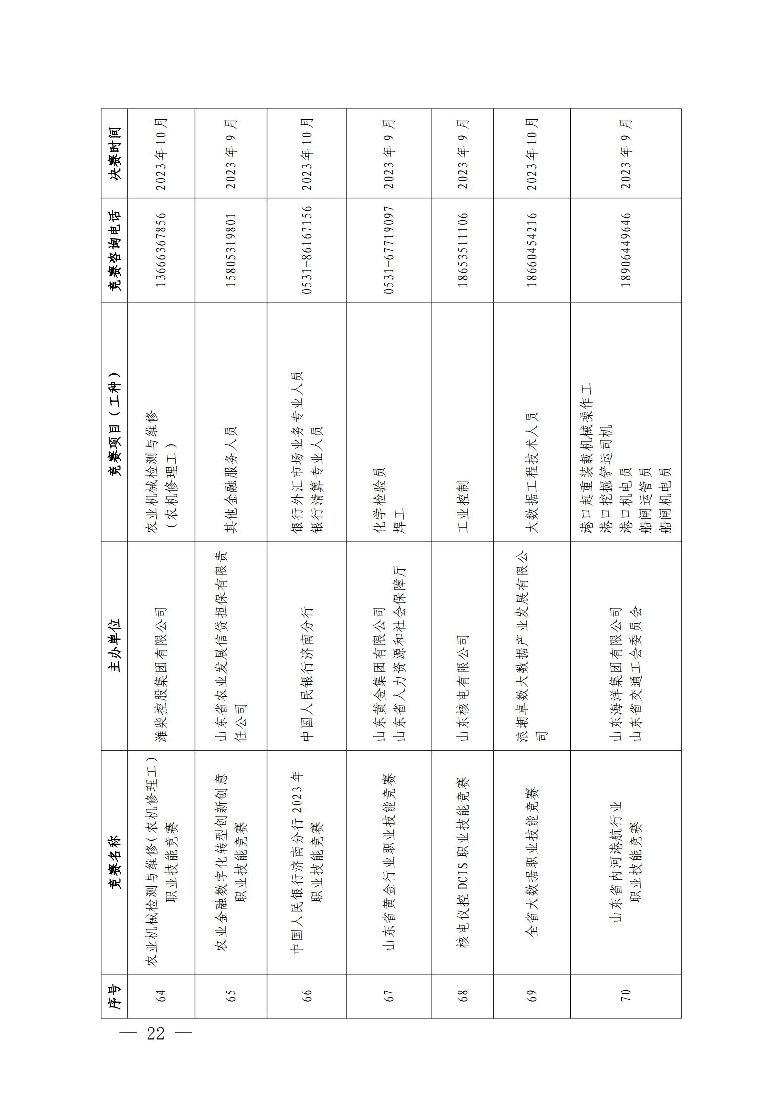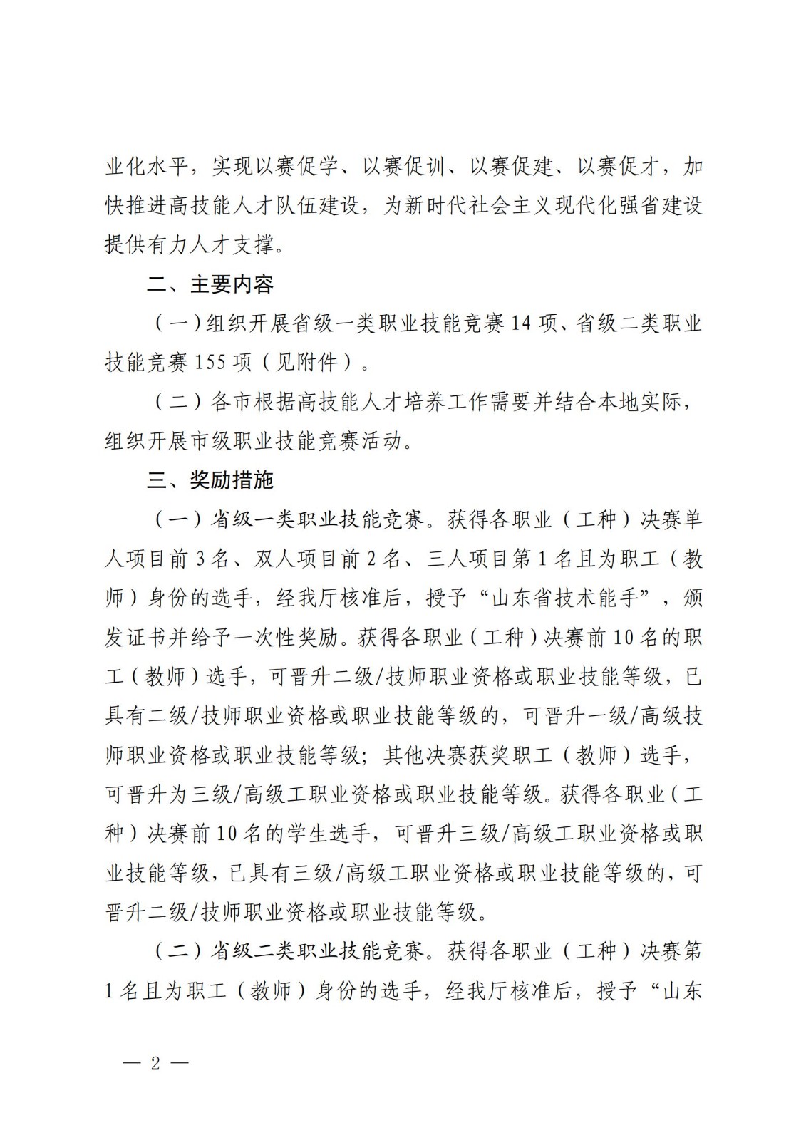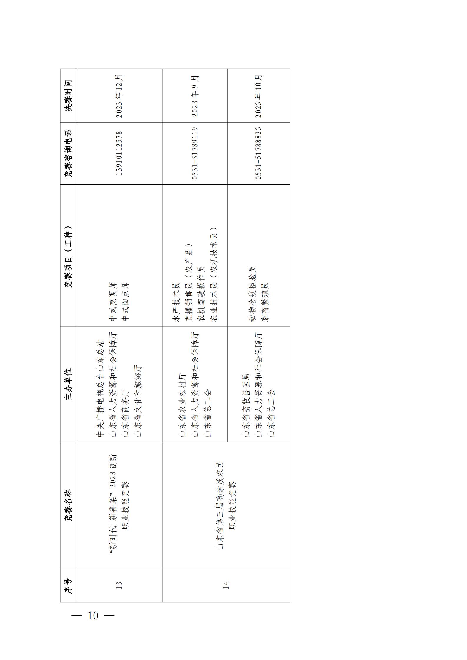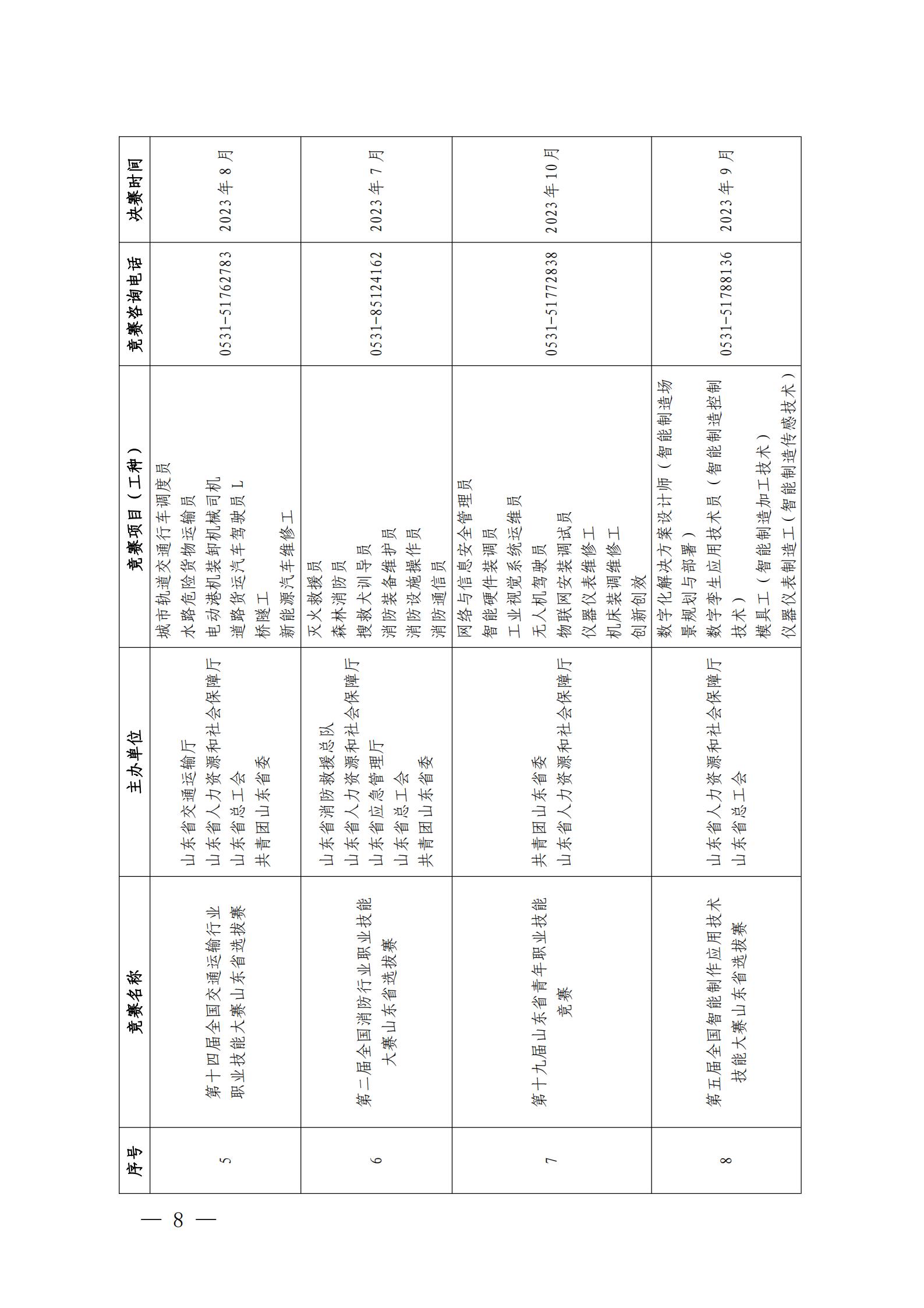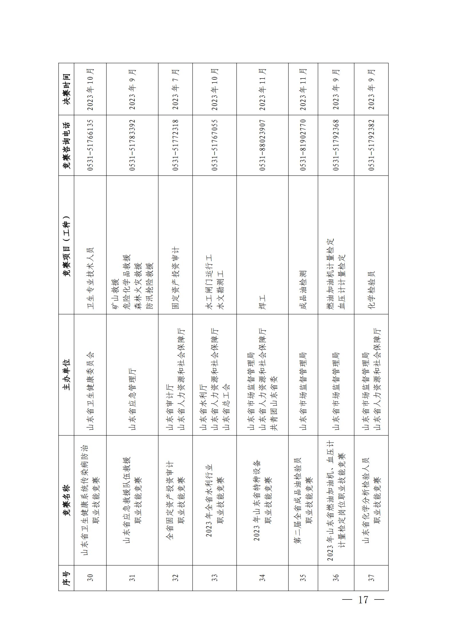 山东省人力资源和社会保障厅《关于组织开展2023年山东省“技能兴鲁”职业技能大赛的通知》