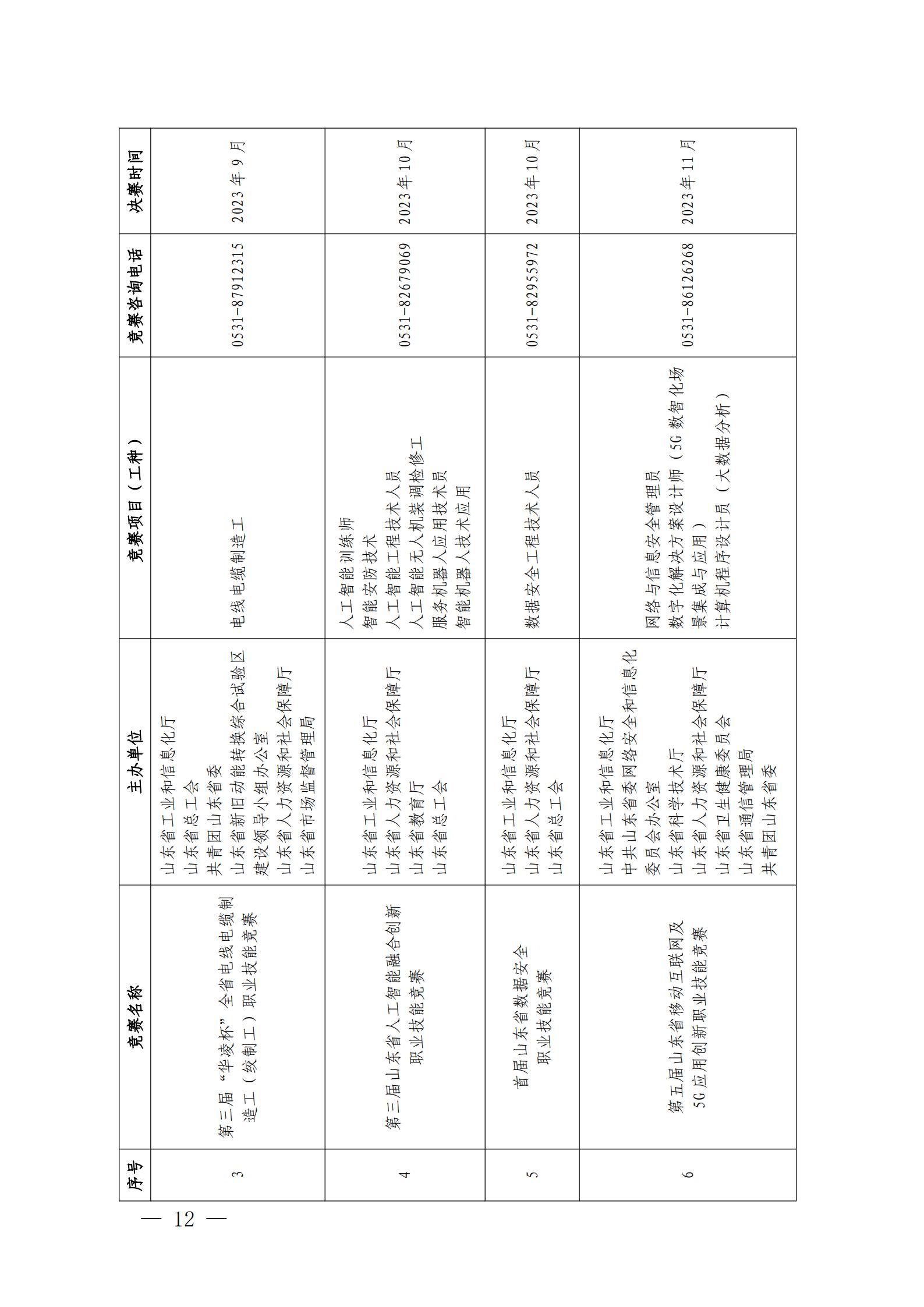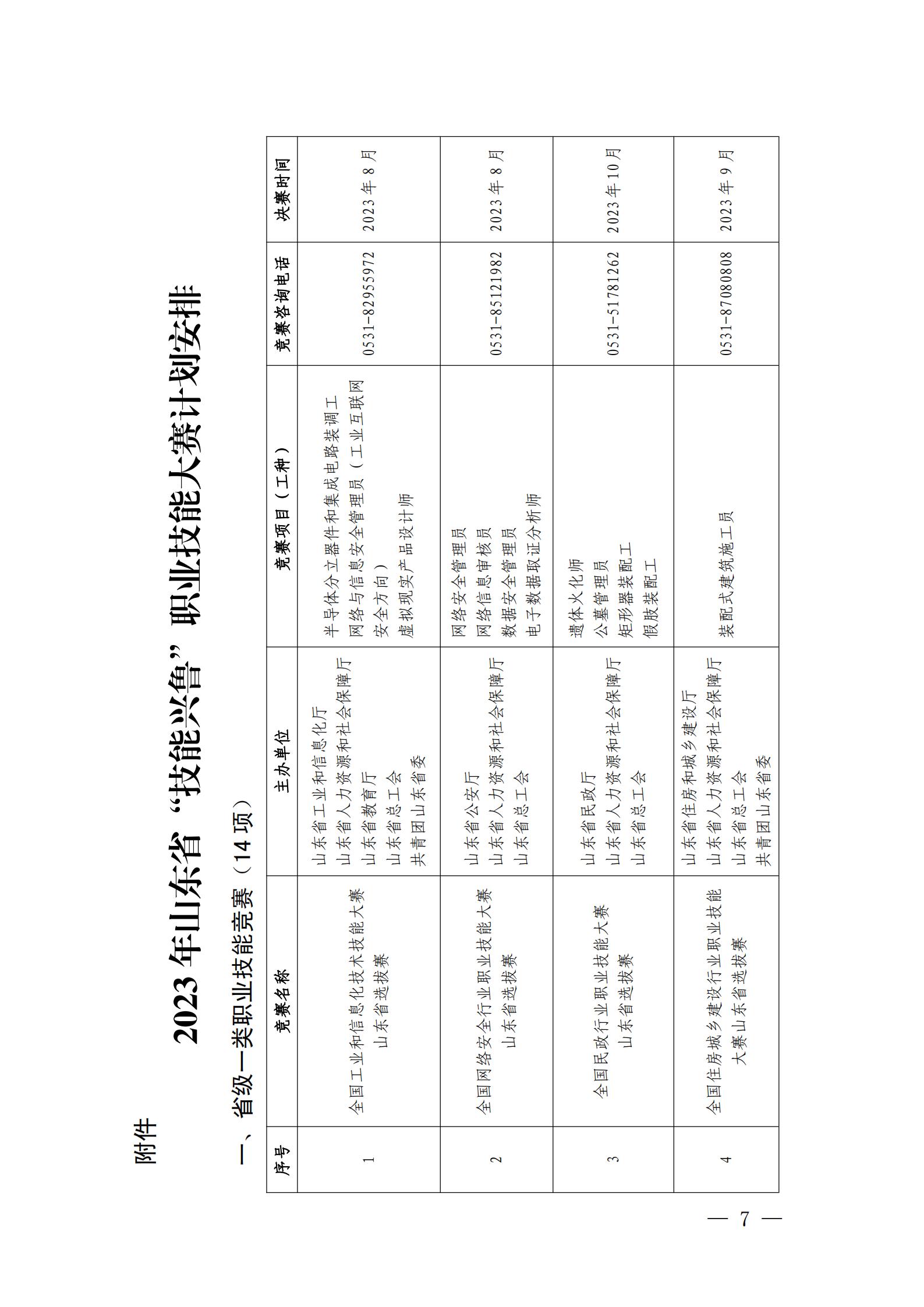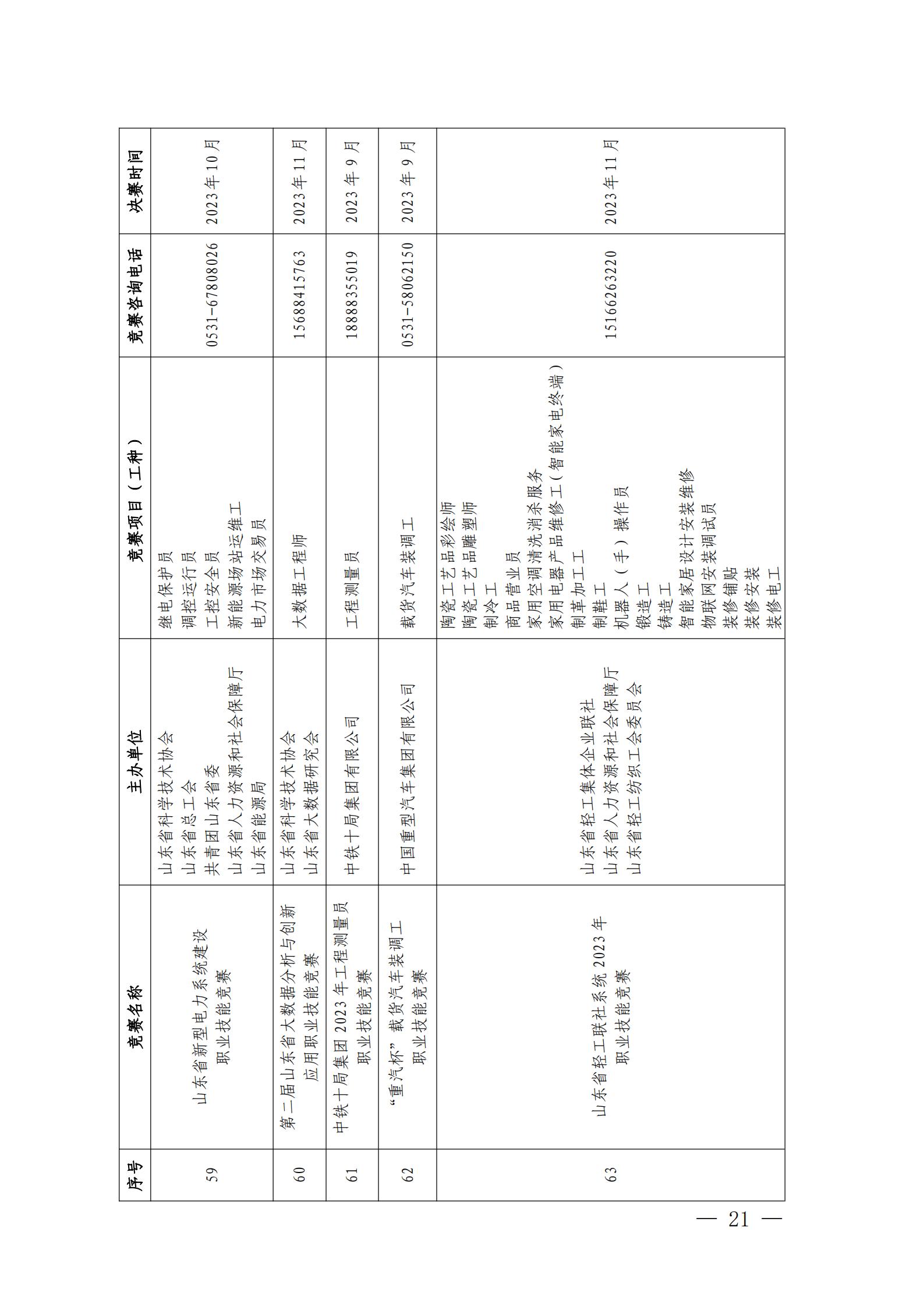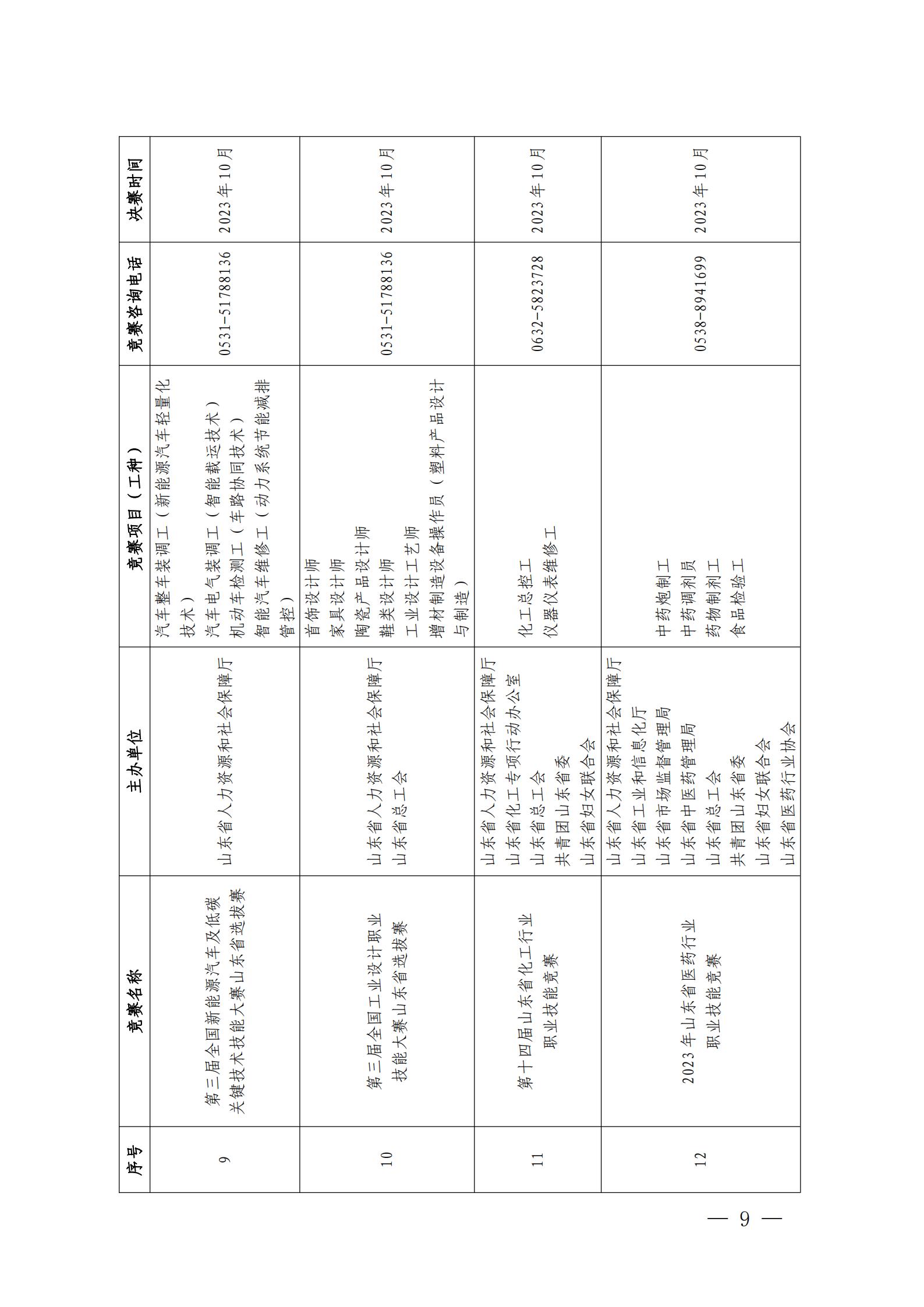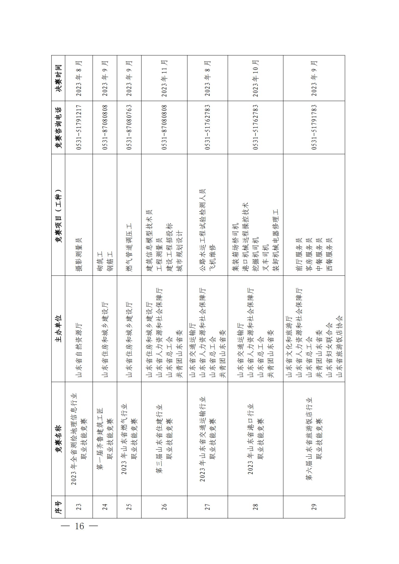 山东省人力资源和社会保障厅《关于组织开展2023年山东省“技能兴鲁”职业技能大赛的通知》