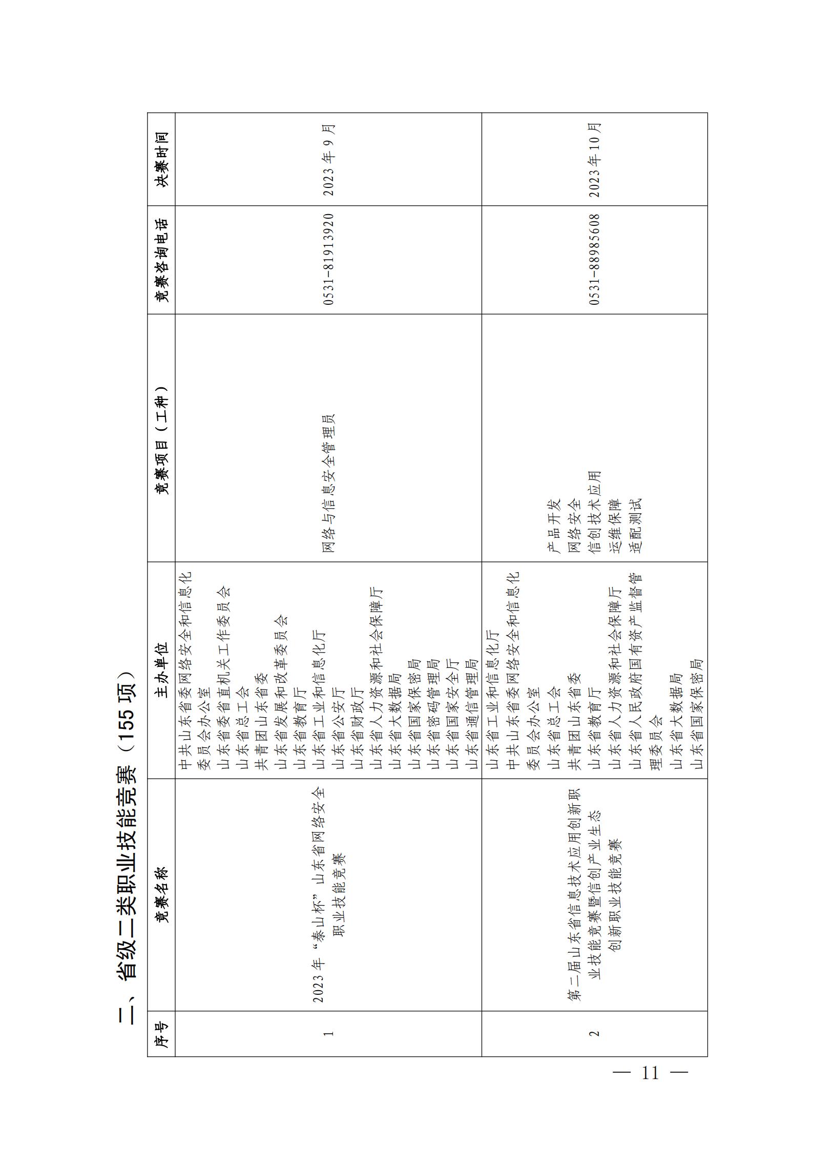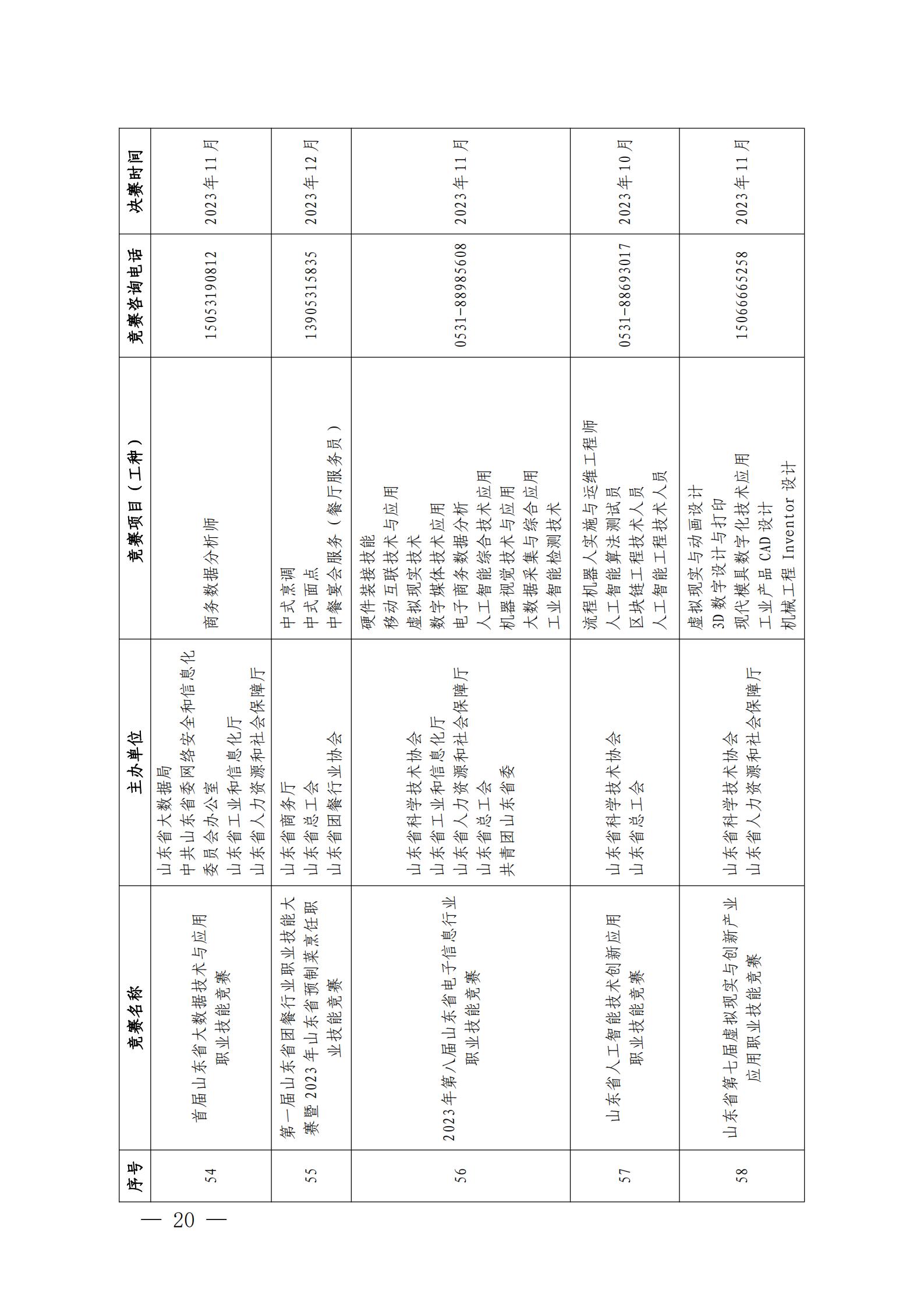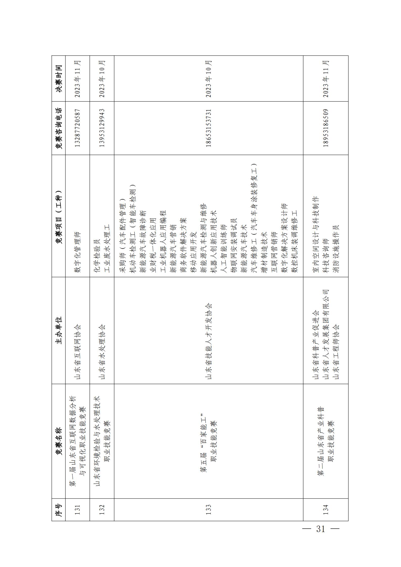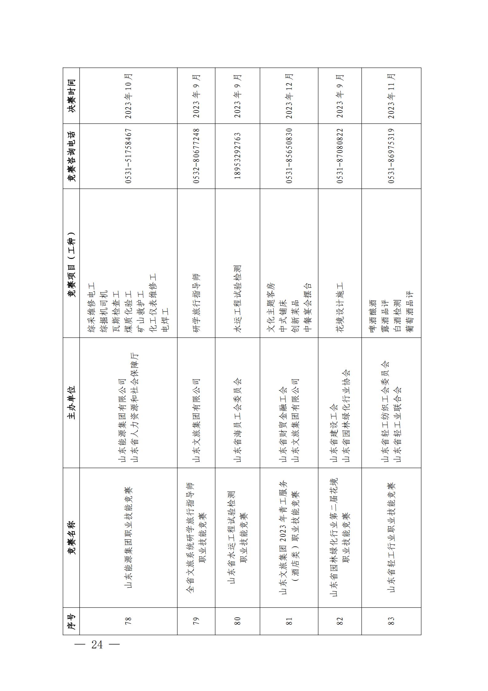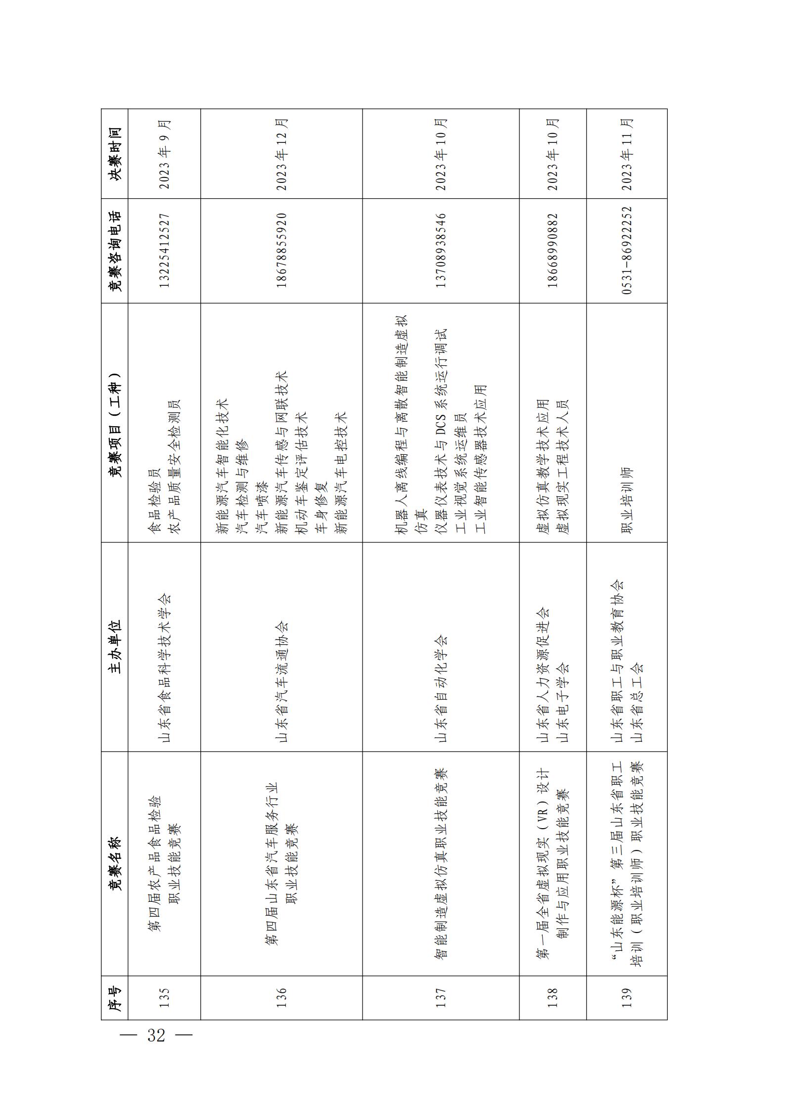 山东省人力资源和社会保障厅《关于组织开展2023年山东省“技能兴鲁”职业技能大赛的通知》