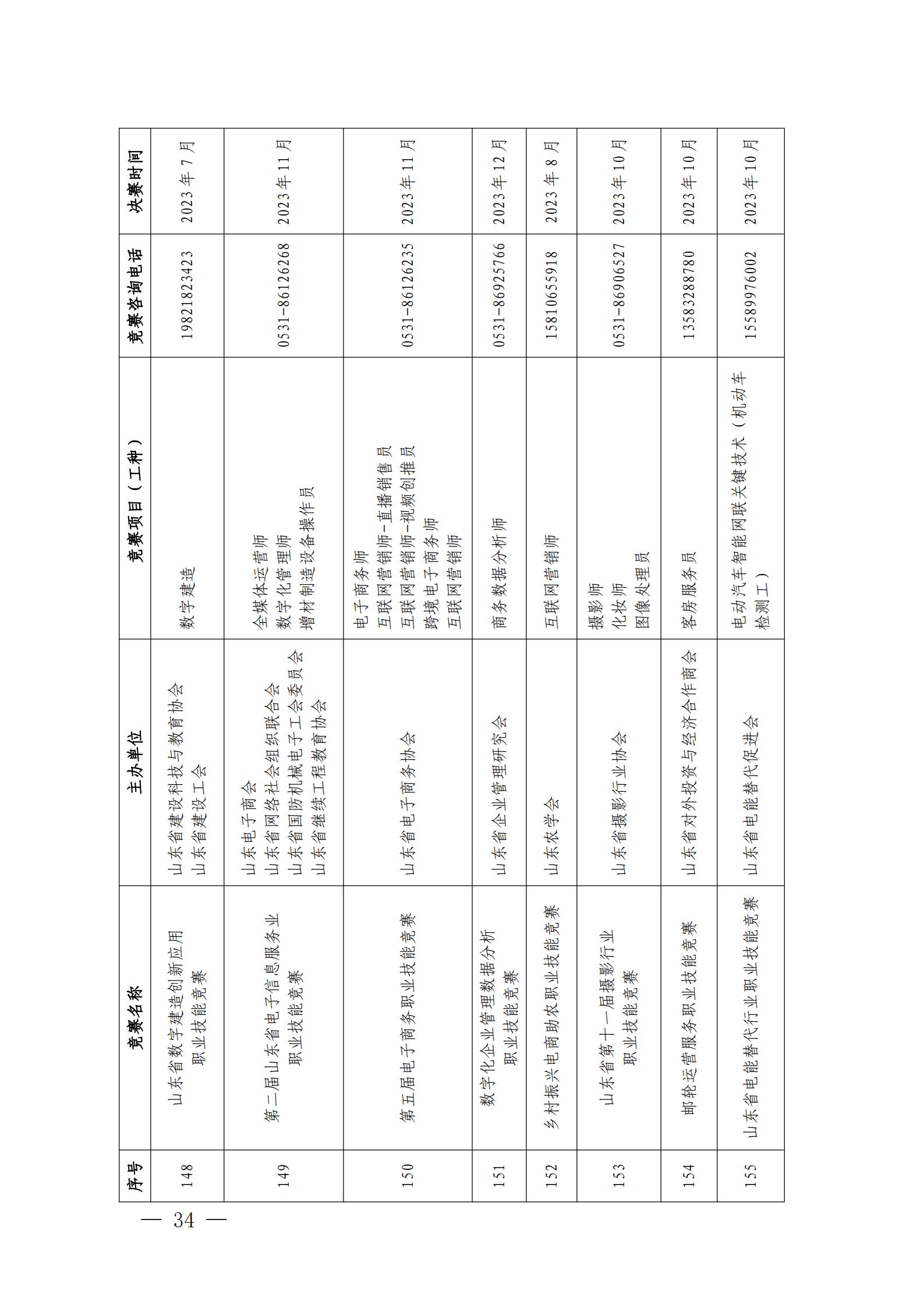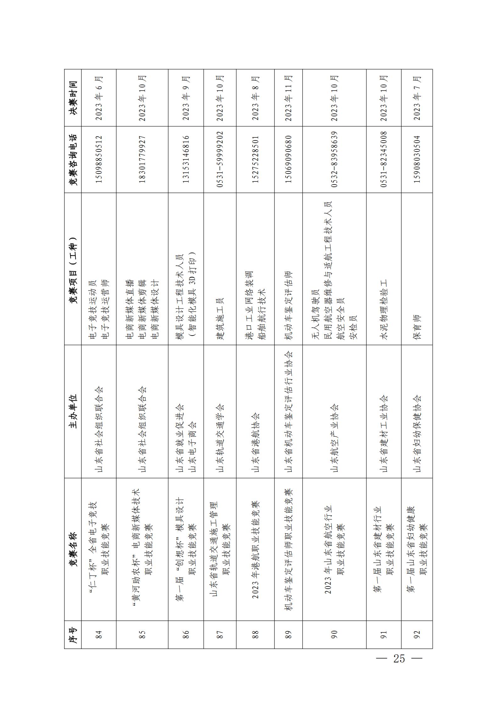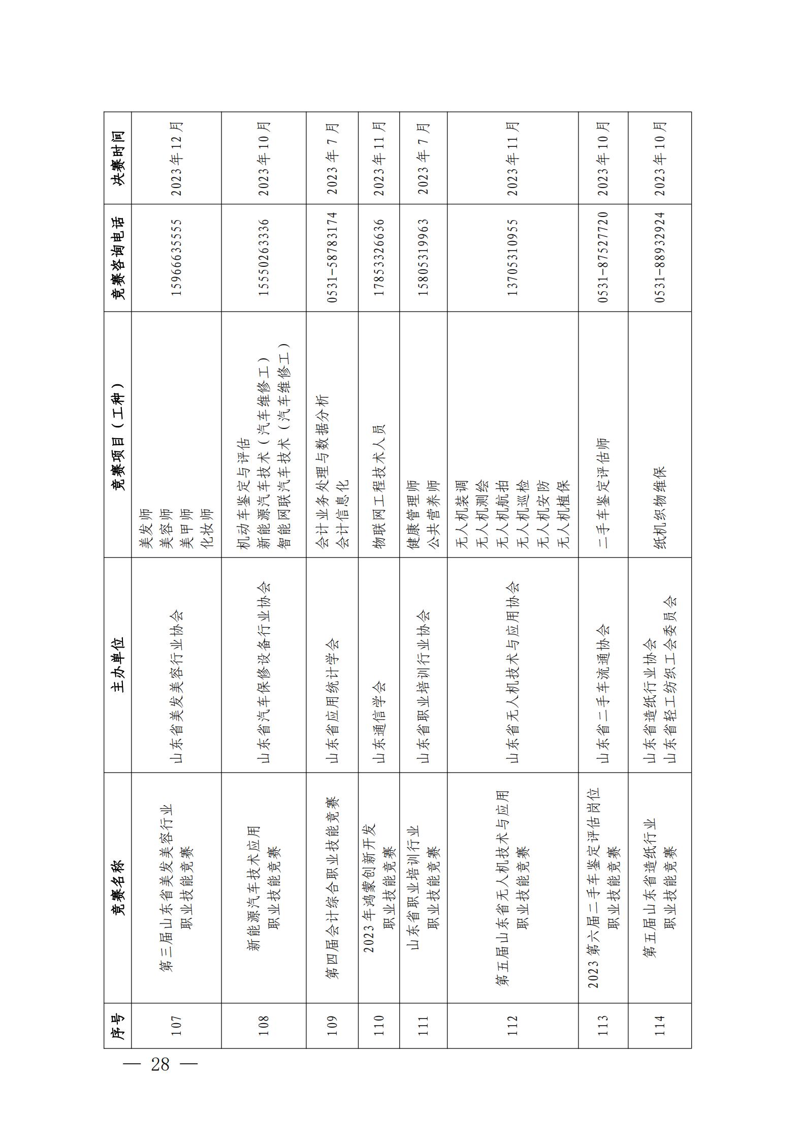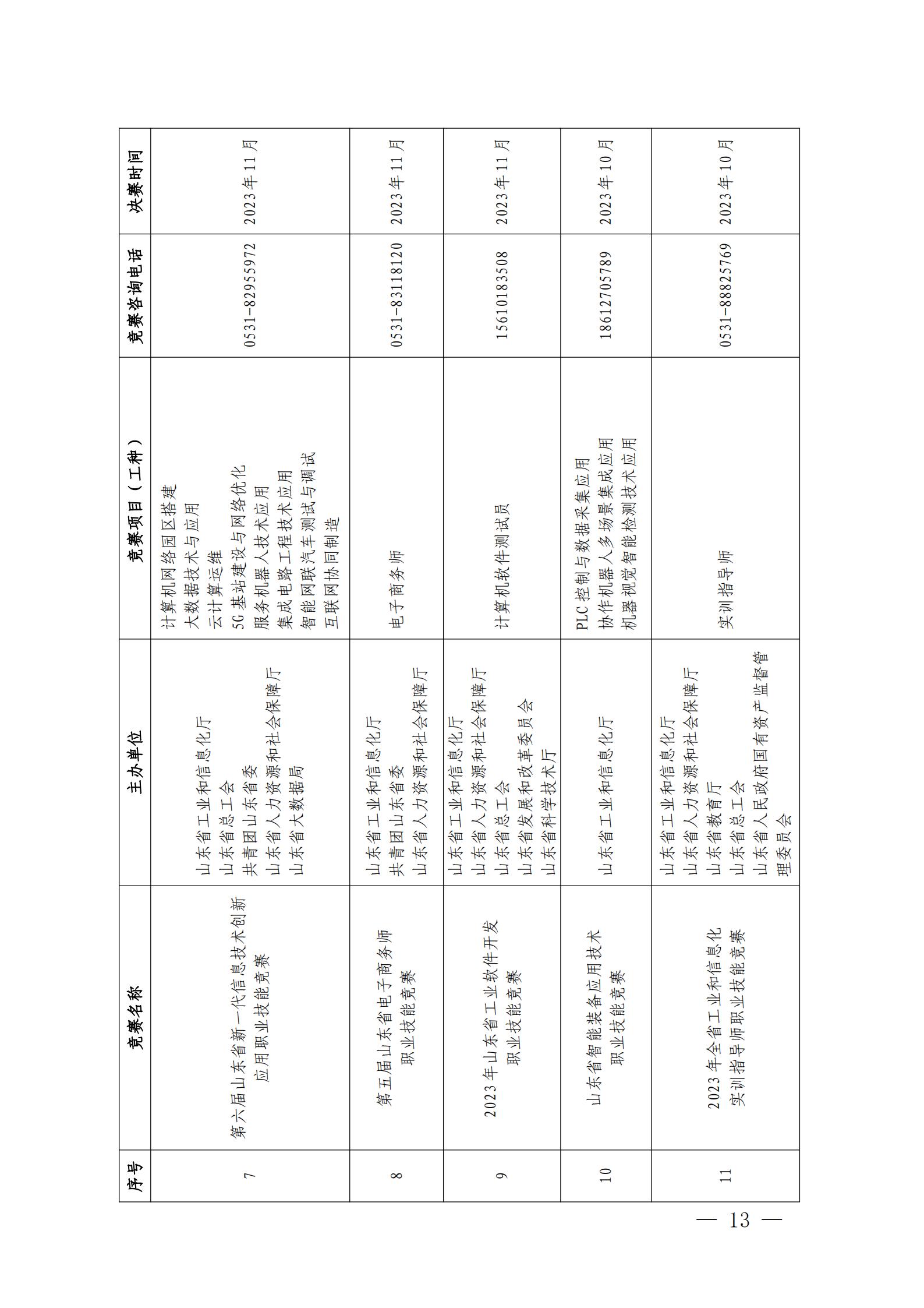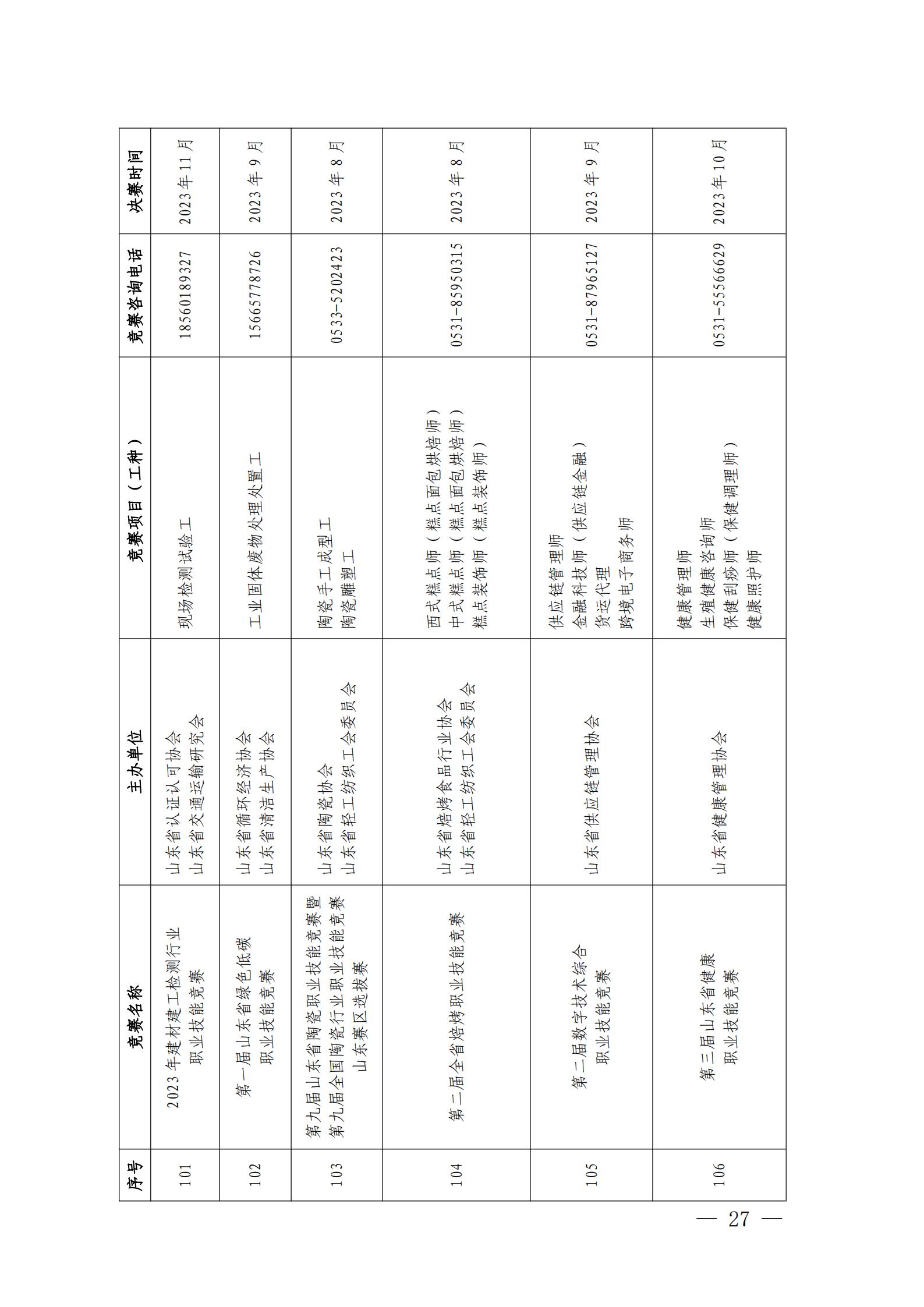 山东省人力资源和社会保障厅《关于组织开展2023年山东省“技能兴鲁”职业技能大赛的通知》